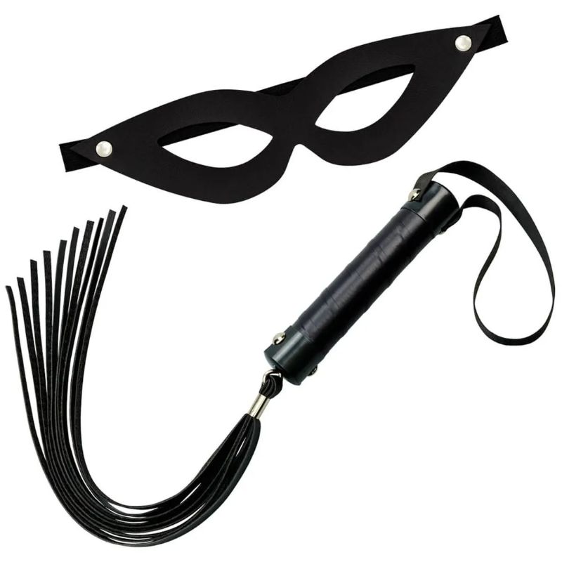 Este kit contém um Chicote e Máscara Tiazinha. São confeccionadas em material sintético similar ao couro para proporcionar um toque confortável ao corpo. Possui detalhe de alça em poliéster acetinado.
